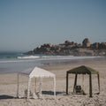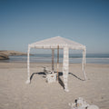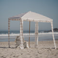 Designed to deliver maximum shade with effortless style, the Cypress Cabana perfectly embodies The Beach Bums’ signature aesthetic. Ideal for those seeking versatile outdoor sun protection, this cabana combines form and function seamlessly. The easy pop-up umbrella mechanism allows for a quick setup, while the solid wooden centre pole ensures lasting stability. Each of the four corners can be securely anchored using the built-in sand pockets for beach days or the included steel pegs when setting up on grass — giving you dependable shade wherever your adventures take you.